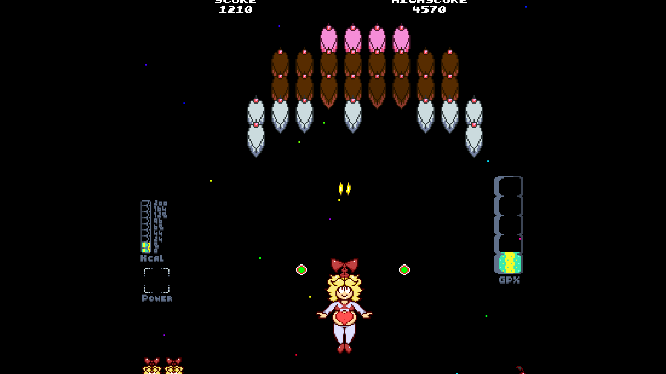 Genuinely if you're looking for a solid SHMUP Experience (and want to see a buncha Fat gals belching/farting in space while eating cake), you should play this game. It's absolutely worth at minimum a fiver for all the content and art it offers (so that's what I paid). I'm certainly going to keep tabs on the Dev(s) to see if (hopefully when) the dedicated campaign mode comes out. I'm sure it's a lot of work, even moreso for a smaller dev team (Six full campagins minimum, most likely some Touhou-esque cutscene's, written dialogue, more sprites and maybe extra voicework), So i don't expect anything to happen for a long time, but if (again, hopefully 'when') it releases I'm sure it'll be just as if not more quality than what we have here. And for what it stands, the game itself is in a solid state as just an Arcade SHMUP.